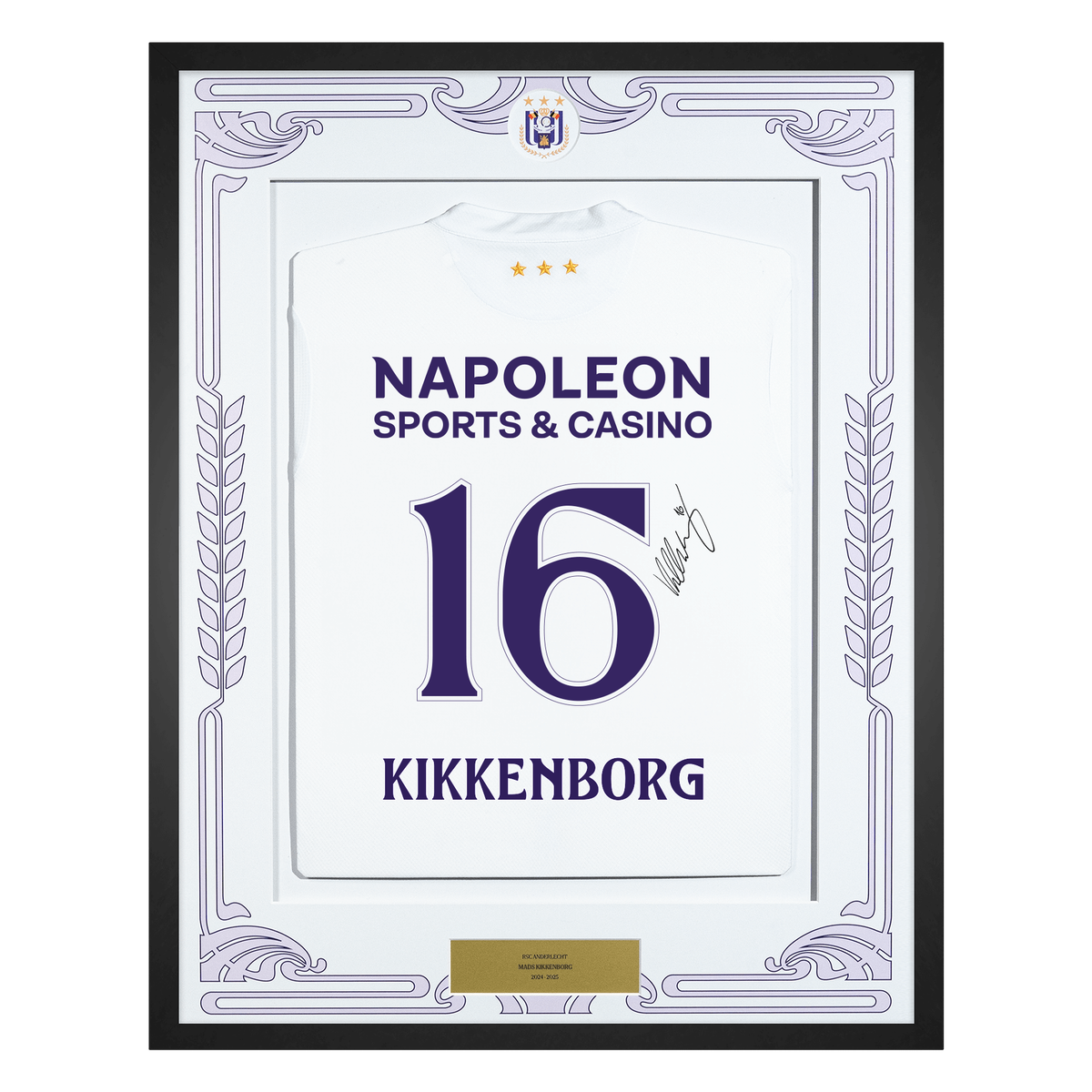 Framed and signed official away shirt of your favorite player. A stylish, elegant design with a plaque engraved of the club's name, followed by the player's name and the current season. Dimensions : 87.5cm x 68 cm. Weight : 6kg. Important note: The delivery time for this item is 15 to 20 days. The framed jersey will be delivered separately from the other items ordered. No discount applies on this item. “Each signature is unique and authentic, the product you receive may differ from the one shown above.”