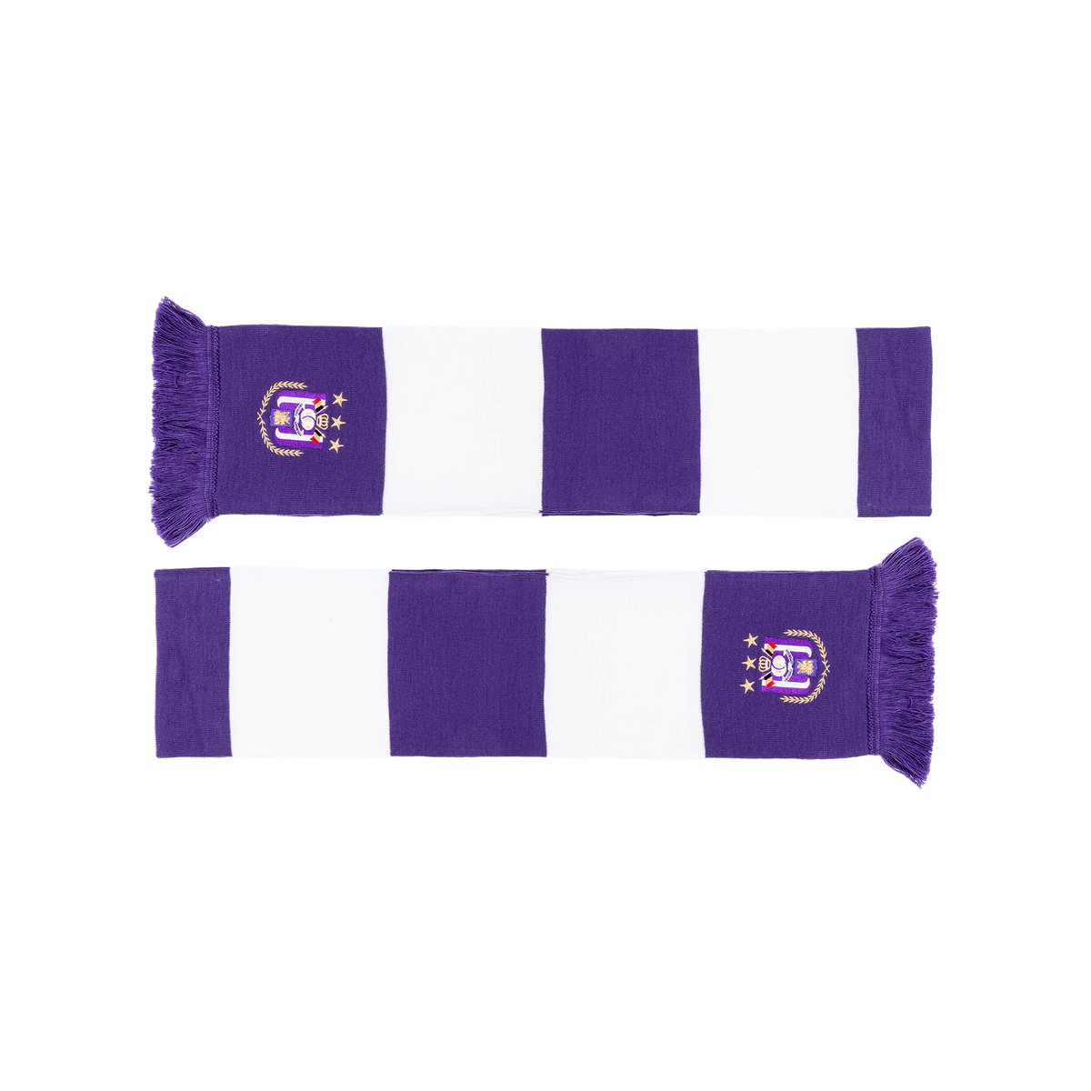 Purple et white scarf, features the RSC Anderlecht logo on both sides.
