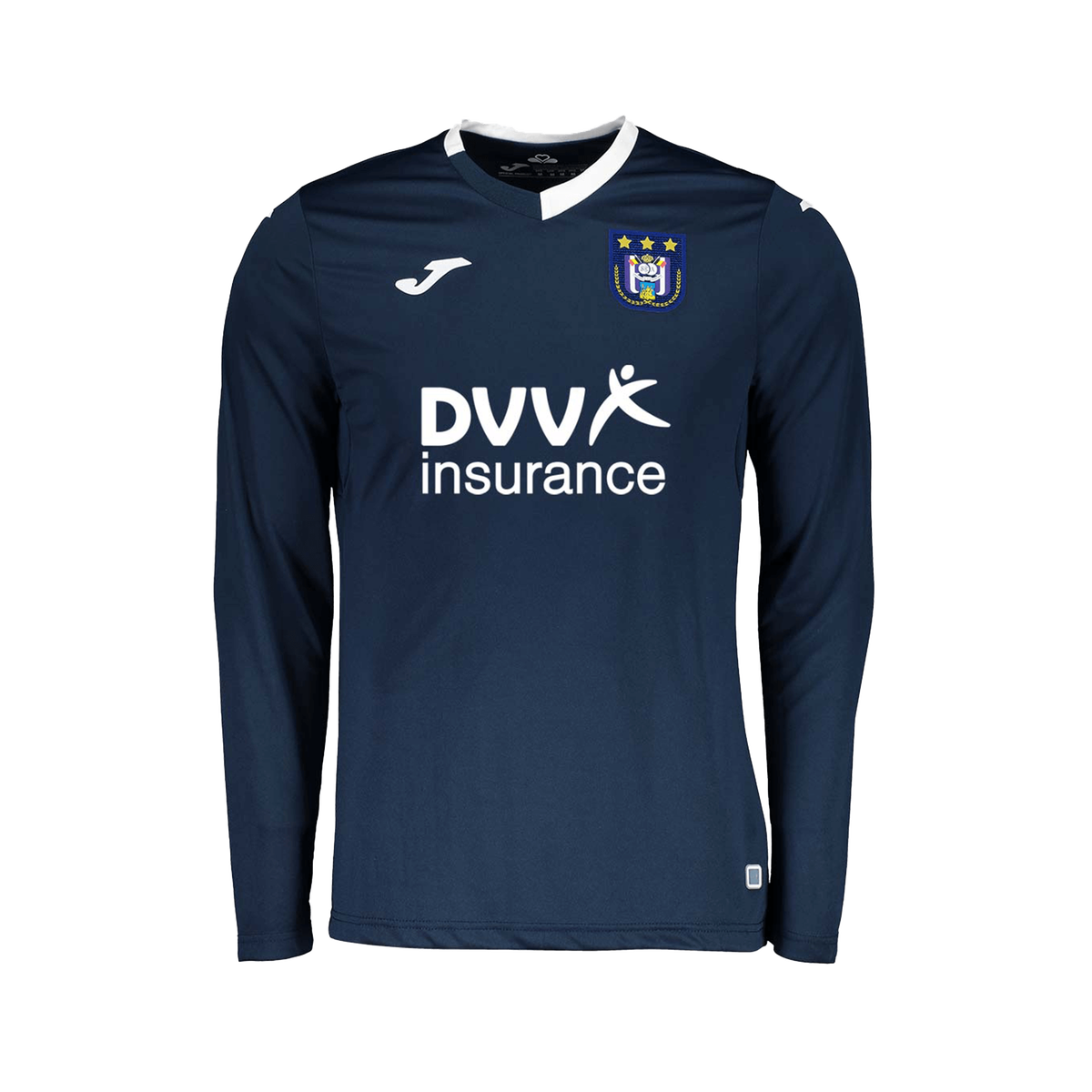 C'est dans ce maillot bleu foncé pour enfants, conçu par Joma, que les gardiens de but du RSCA défendront les couleurs de notre club lors des matches. Le motif subtil, les accents blancs et les trois étoiles au niveau du cou créent un look unique.