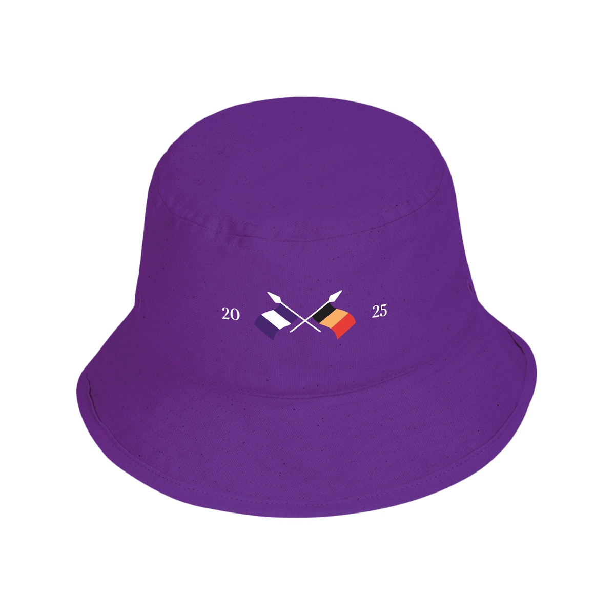 Collectie Belgian Cup Final 2025. Paarse bucket hat met geborduurde vlaggetjes, perfect voor een relaxte look in de kleuren van de club.