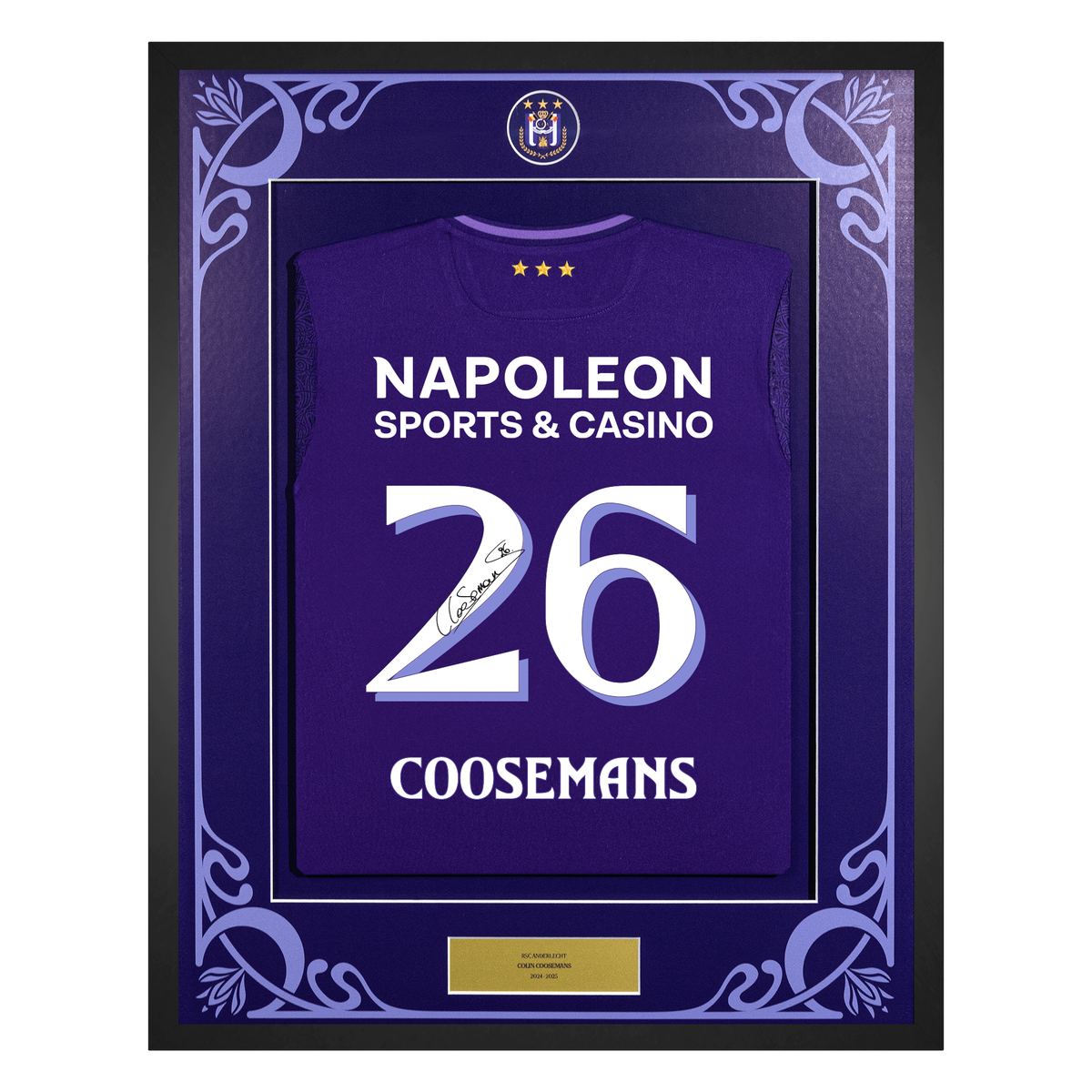 Officieel thuisshirt, ingekaderd en gehandtekend door uw favoriete speler. Een sober en stijlvol design, met een gegraveerd plaatje waarop de naam van onze club staat, gevolgd door de naam van de speler en het huidige seizoen.