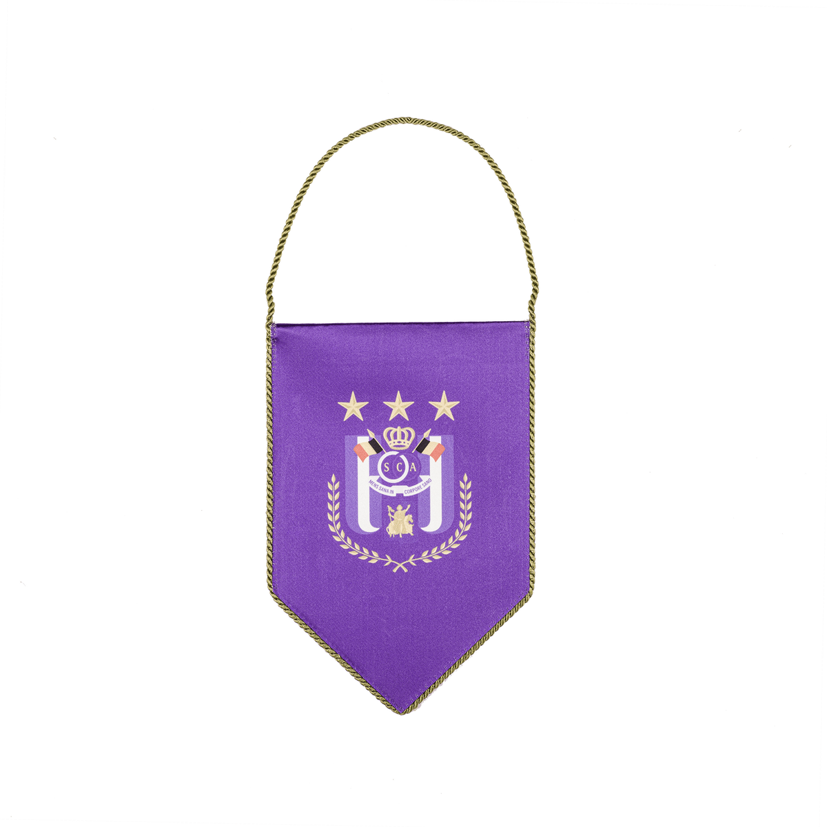 RSC Anderlecht Vaandel, met het clublogo aan de ene kant en de tekst "Royal Sporting Club Anderlecht" aan de andere kant.