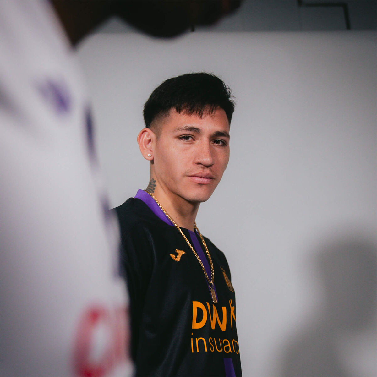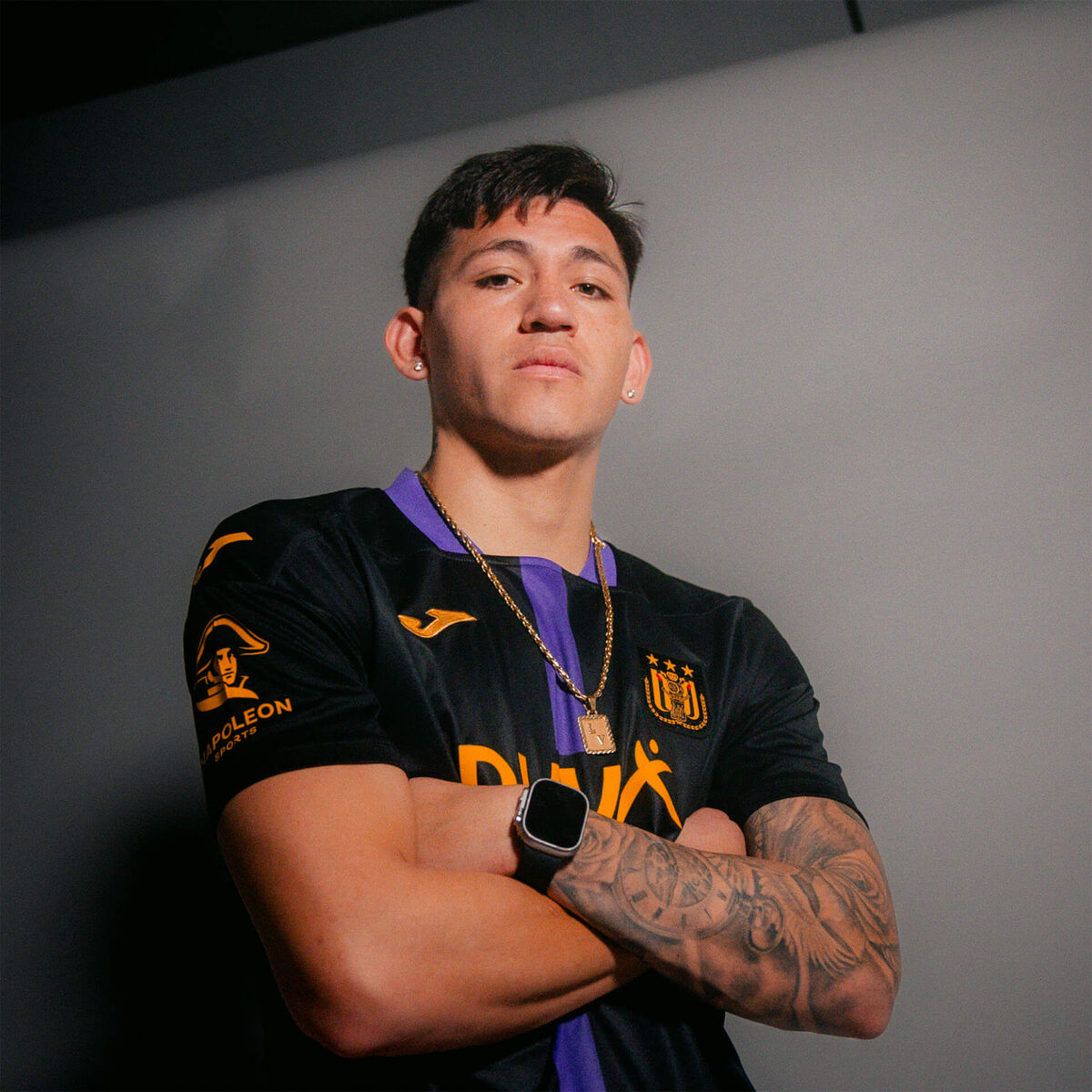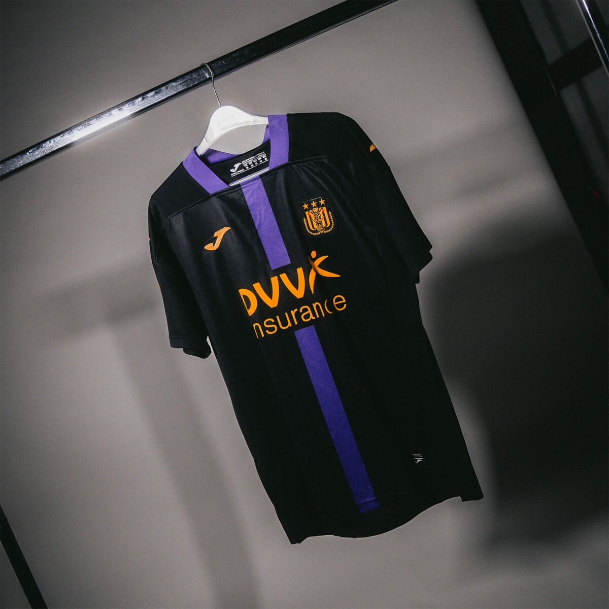 Dit zwarte shirt met paarse streep en goudgele accenten is het derde shirt van dit seizoen. In de nek van het shirt is ook de Belgische driekleur verwerkt.