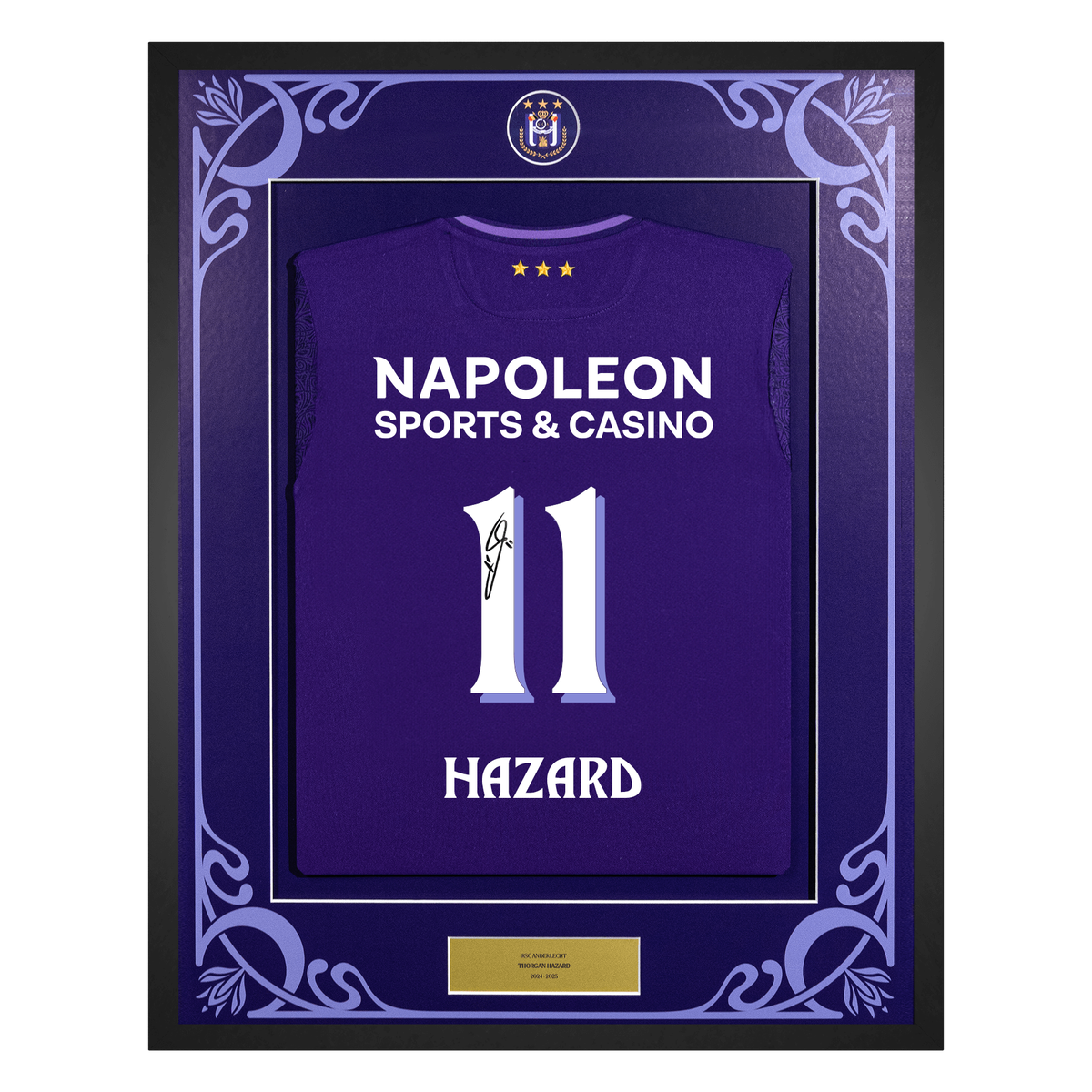 Officieel thuis shirt, ingekaderd en gehandtekend door uw favoriete speler. Een sober en stijlvol design, met een gegraveerd plaatje waarop de naam van onze club staat, gevolgd door de naam van de speler en het huidige seizoen.