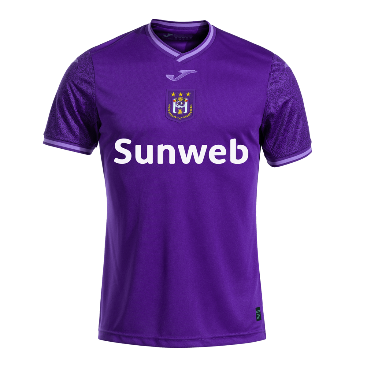 Home Shirt 24/25 - Art Nouveau Reimagined. Het thuisshirt is klassiek paars, en heeft het clublogo opnieuw centraal op de borst. In de mouw herken je ton-sur-ton de typerende patronen van de Art Nouveau