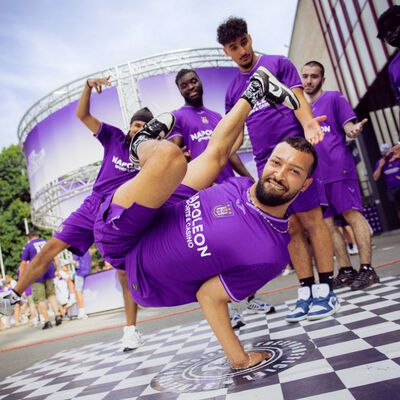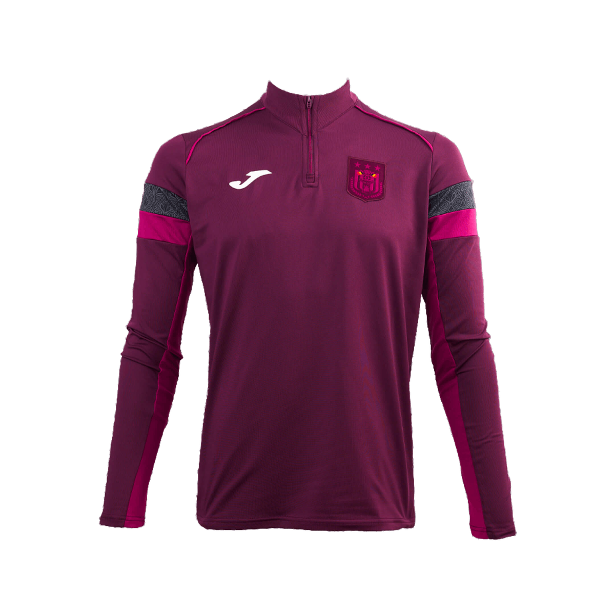 Training Sweater Staff 24/25 De trainingssweater, in bordeauxrood, draagt het clubwapen op de linkerkant van de borst. Op de mouwen zie je typische Art Nouveau-patronen in antraciet.